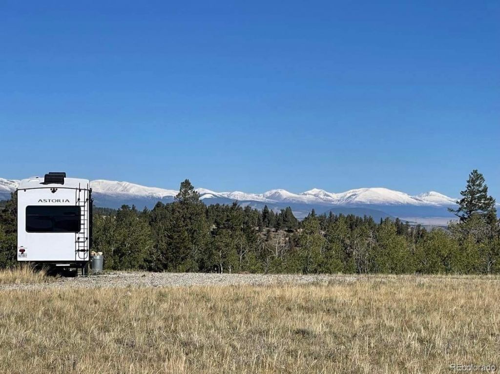 Ranch of the Rockies 3.6 acres mostly level with a gradual slope to the back. Aspen and evergreen grove of trees on back corner of property with 360-degree views of the mountains. You can even see pikes peak on a clear day. 200amp electric service buried to RV pad with a 50amp, 30amp, and 110 plug installed. Large gravel RV pad and driveway in place. Good cell signal at this location no issues streaming Netflix with AT&T mobile hotspot. This is a great lot in a wonderful mountain community. On the top of the hill, with a wide-open space at the road, and going into a nice mix of trees at the back. You have lots of options for views or privacy. Ready for you to camp now or build in the near future. Views across the rolling hills and the valley to the snow-capped peaks in the distance give you that real Colorado mountain feel. Ranch of the Rockies is a step up from some other communities, offering amazing amenities, including a mailbox bank and trash at the entrance to the community, access to a community burn pile to keep your property clear of fire danger, and also, they have two fire protection stations in the neighborhood. Cheap storage for your RV, RV Dump Station, as well as very reasonable horse pasturing, and even a nice dog park! (Trailer, fencing and water container in photos are not included)