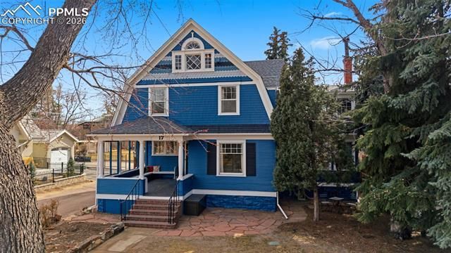 Fall in love with this timeless 1895 Victorian nestled in the heart of Colorado Springs’ historic North End. Set along tree-lined streets just moments from downtown shopping, dining, and Colorado College, this residence perfectly blends classic craftsmanship with contemporary comfort. Inside, intricate millwork and rich hardwood floors showcase the artistry of the era, while tall windows and high ceilings invite abundant natural light. The kitchen features marble countertops and generous storage, offering both beauty and function. The main home includes six spacious bedrooms, and an upstairs bath fully remodeled with radiant heated floors and a relaxing clawfoot tub. The lower level includes an efficiency apartment with its own entrance and radiant heat—ideal for guests or extended family. A detached two-car garage with a one-bedroom, one-bathroom ADU with full kitchen and Living Room above provides additional versatility for rental income, work-from-home space, or a private retreat.
