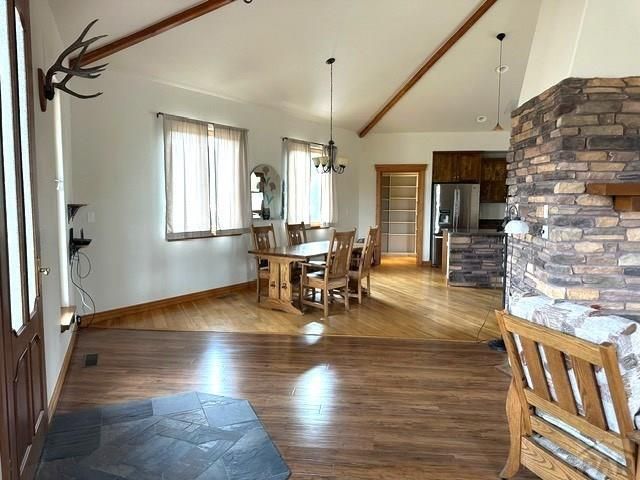 Set against breathtaking mountain views, this stunning 3,079-square-foot mountain home offers the perfect blend of comfort, space, and natural beauty. Nestled on 35 private acres, the property provides unmatched tranquility, wide-open skies, and panoramic vistas that can be enjoyed from nearly every angle. Designed with both luxury and functionality in mind, the home features three spacious bedrooms and three and a half bathrooms, including two master suites. Each master bedroom offers a private retreat with generous space, large windows that frame the surrounding landscape, and en-suite bathrooms designed for relaxation and convenience. Whether accommodating family or hosting guests, the dual master layout ensures privacy and comfort for all. The main living areas are thoughtfully arranged to capture the beauty of the outdoors while maintaining a warm, inviting atmosphere inside. Expansive windows bring in natural light and showcase the sweeping mountain scenery. The open floor plan allows for effortless flow between the kitchen, dining, and living spacesâ?? ideal for entertaining or simply enjoying peaceful evenings at home. Double fireplace in the living area. A well-equipped kitchen provides ample counter space and storage, making it perfect for preparing meals after a day spent exploring the acreage. Outside, the 35 acres offer endless possibilities, from hiking and wildlife watching to creating gardens or simply savoring the quiet serenity of mountain living. Completing t