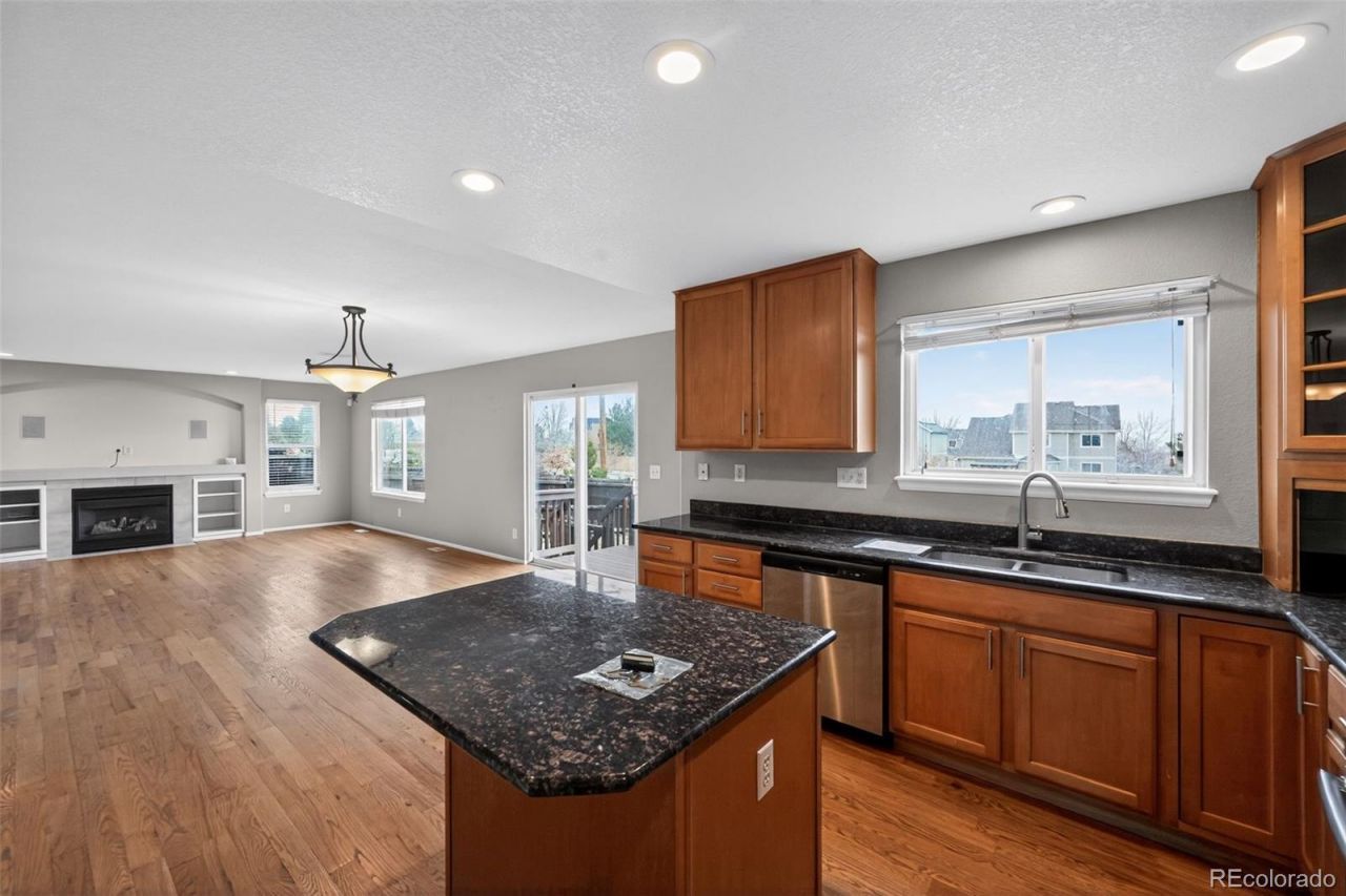 Updated 5 bedroom 4.5 bath home in the desirable Saddle Rock Ridge community! This light-filled home features an open floor plan perfect for everyday living and entertaining. Enjoy refreshed hardwood flooring on the main level and recently installed carpet throughout. The kitchen shines with rich wood cabinetry and granite countertops, offering both style and functionality. Upstairs, youll find a spacious loft and a generous primary suite complete with a luxurious five-piece bath and a large walk-in closet.. The inviting family room features a cozy gas log fireplace, while the roomy basement provides endless possibilities for additional living space, a home gym, or recreation area. Located in a fantastic area, this wonderful home truly has it all. Come see it for yourself!