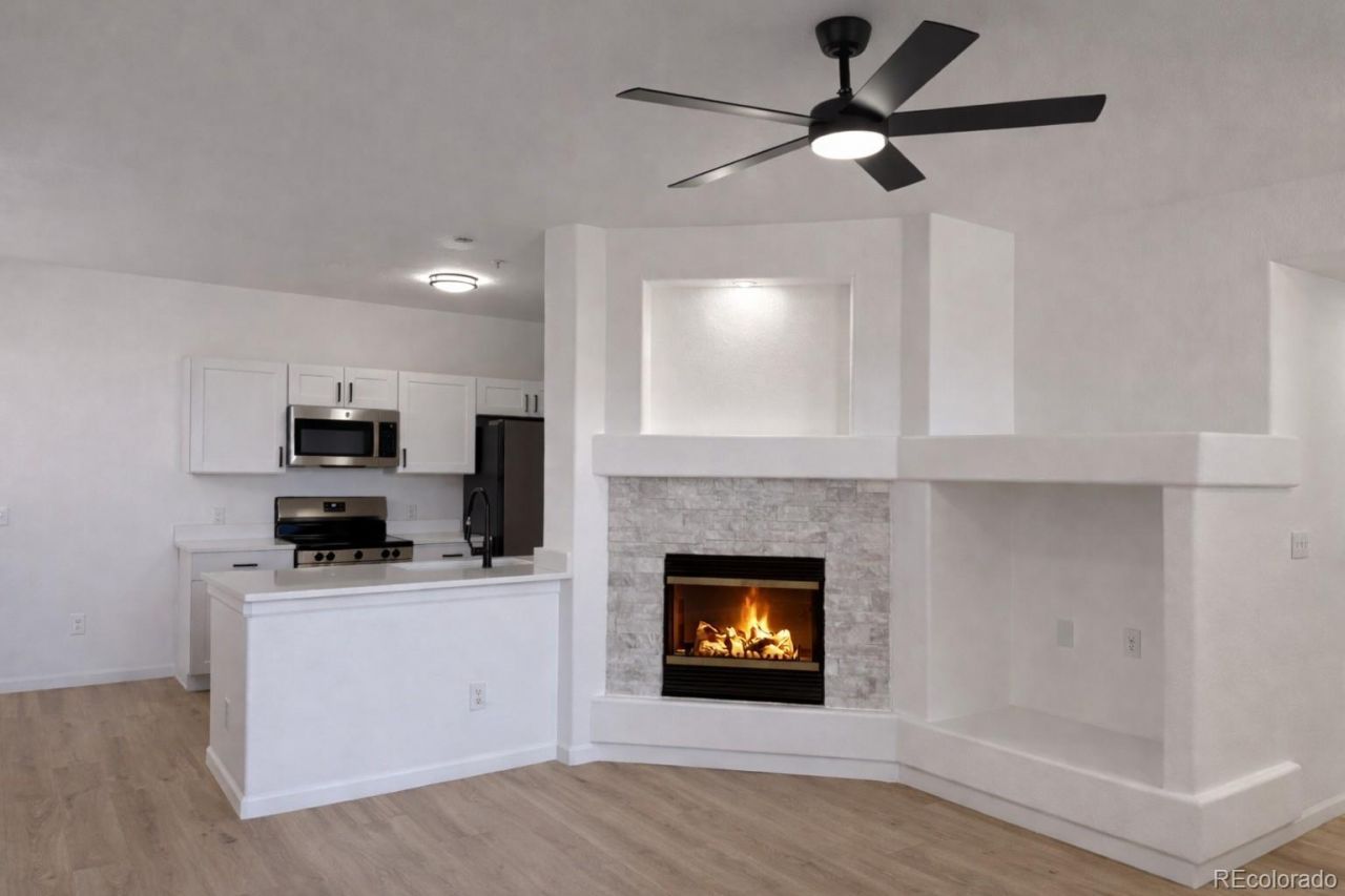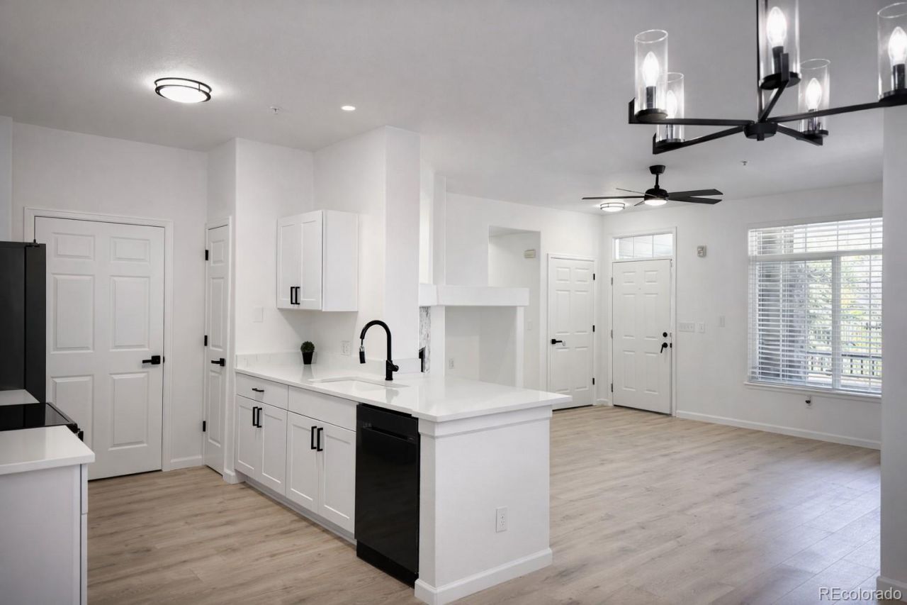 Discover this beautifully updated, move-in ready first-floor condo in the heart of Castle Rock, offering true single-level living with no stairs?perfect for comfort, convenience, and easy accessibility.Featuring a modern contemporary style, this home offers a bright and inviting living room with a cozy electric fireplace and direct access to a charming front porch?ideal for relaxing mornings or quiet evenings. The kitchen is designed for both function and entertaining, complete with a breakfast bar, pantry, dining room storage closet, new cabinets, quartz countertops, a white kitchen sink, and stainless steel appliances, some of which are new. The entire home features newly remodeled laminate flooring, and all lighting fixtures have been updated.The spacious primary suite includes a walk-in closet and direct access to a private balcony, creating your own peaceful retreat. The second bedroom also features a closet for added storage. Both bathrooms include vanities; one offers a bathtub, while the other features a relaxing whirlpool tub for a spa-like experience.Additional highlights include a washer and dryer, 9-foot ceilings, a ceiling fan in the living room, and wider doorways for enhanced accessibility. The home also includes two assigned parking spaces. Water is included in the HOA fee.Resort-style amenities are just steps away, including a playground, heated pool, and fitness center. The location is unbeatable?close to shopping, dining, and directly across from Metzler Ranch Park and Renaissance Magnet School.This home offers the perfect blend of modern style, comfort, and low-maintenance living in one of Castle Rocks most desirable locations!