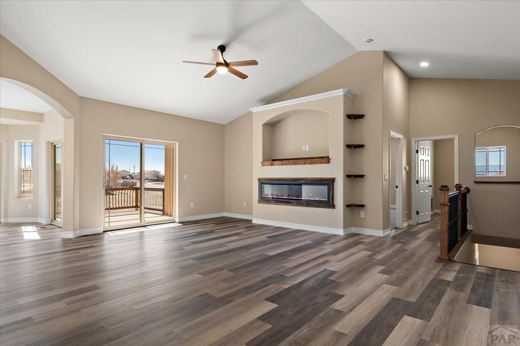 Nestled serenely on a quiet cul-de-sac, this beautiful new custom-built ranch home offers the perfect blend of privacy, convenience, and modern amenities. Set on an expansive 1.18-acre lot, the residence is minutes from Lake Pueblo State Park, Skyview Middle School and Pueblo West High School, making it ideal for families or anyone seeking a tranquil, community-oriented location. Step inside to discover a bright and spacious open layout filled with premium upgrades, including granite countertops in both the kitchen and bathrooms, soft-close cabinetry, and two electric fireplaces that create a warm, inviting atmosphere. Additional features include vaulted ceilings that enhance the sense of openness, walk-in closets for ample storage, a luxurious freestanding soaking tub in the master bathroom, a walk-in master shower, and an upgraded tile shower in the second bathroom. Luxury vinyl plank (LVP) flooring runs throughout the living room, kitchen, entry, and bathrooms, ensuring both style and durability. The home also boasts stainless steel appliances, an attractive acrylic stucco exterior, and an oversized third garage stall, perfect for extra storage, boat, or a workshop. For added efficiency, a tankless water heater is included. This custom-built ranch home features 9' ceilings in the unfinished rear walkout basement, providing endless possibilities for future customization. This exceptional home presents a rare opportunity in a prime location.